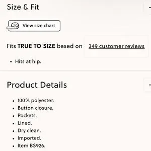⭐ Hits at the hip, fully lined, pockets, and button closure