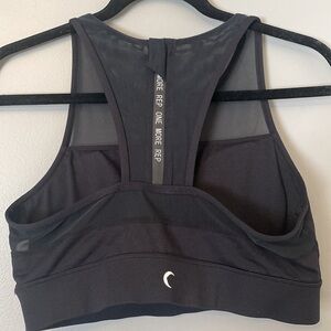 Stylish black sports bra with mesh detail. Perfect for workouts.