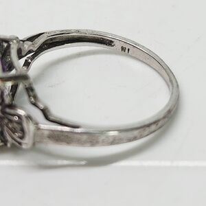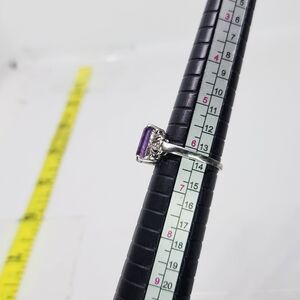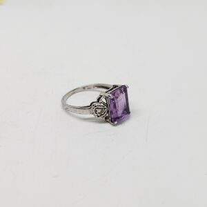 Vintage Art Deco Sterling Silver Emerald Cut Amethyst Diamond Accent Ring 6.25
