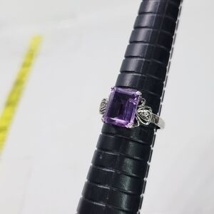 This elegant ring features a stunning purple gemstone set in a beautifully crafted silver band. Perfect for adding a touch of sophistication to any outfit.