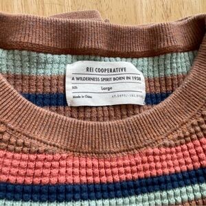 In great preowned condition REI Co-op Women’s Lg Wallace Lake Waffle striped Sweater multicolor long sleeve.