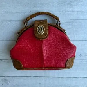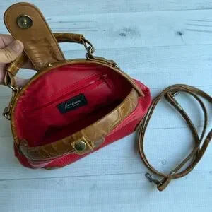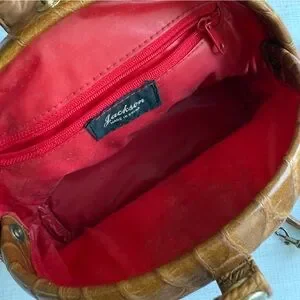 Adorable Vintage Jackson Red & Tan Faux Leather Handbag with Crossbody Strap option