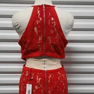 The Room Halter Mini Dress Sz Medium Red Lace Sheer Overlay Sexy Cocktail Party