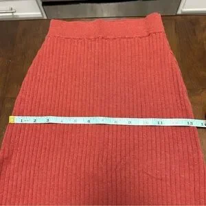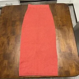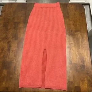 Free People Skyline Midi Skirt in burnt orange color. Bodycon, stretchy fit, front slit- super comfortable.