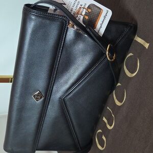 1970s vintage Gucci black leather envelope clutch that converts effortlessly to a shoulder or crossbody- GUCCI collectable Bag
