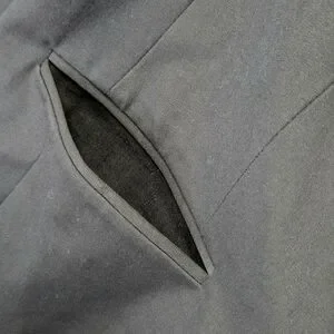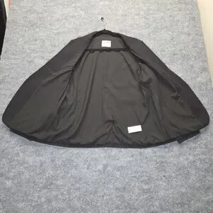 Features: Collarless neckline, single-button closure, welt front pockets, two-button sleeve cuffs, back vent, fully lined