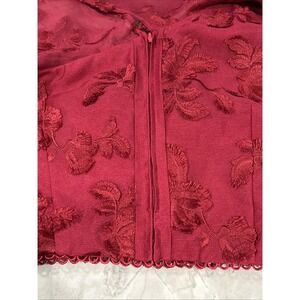 The Anthropologie Ruffled One-Shoulder Top by Keepsake is a stylish and trendy blouse designed for women in size XL. This fuchsia top features a feminine one-shoulder neckline with ruffle accents, adding a touch of sophistication to the outfit. Made of polyester, this top has a regular fit and is perfect for a casual day out or a more dressed-up occasion. The vibrant color and unique style make it a versatile piece that can easily elevate any wardrobe.