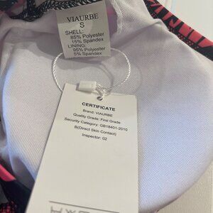 Viaurbe Women’s One Piece Swimsuit Small Black Pink Tropical Print Cutout Ruched