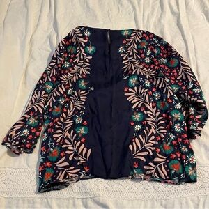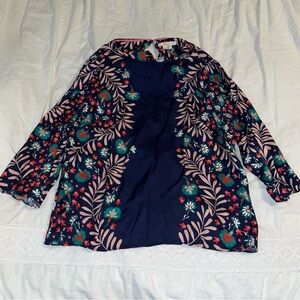 Boden Larissa US 16 Navy Blue Floral Blouse 3/4 Sleeve Boho Flowy Top Plus