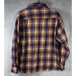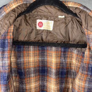 VTG 1960-70s Sears Kings Road Wool Plaid Flannel Shirt Brown & Blue Sz XL
