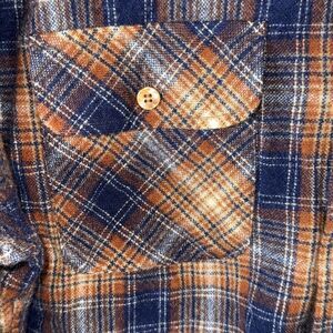 VTG 1960-70s Sears Kings Road Wool Plaid Flannel Shirt Brown & Blue