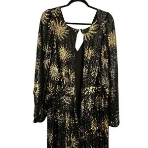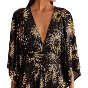 NWT RARE Farm Rio Sunny Mood Sequin Maxi Dress Black Gold Extra Large XL