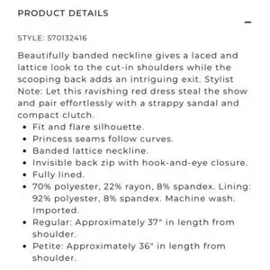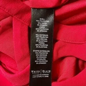 White House Black Market Red Fit & Flare Dress. Beautifully banded neckline gives a laced and lattice look to the cut in shoulders while the scoop back adds an intriguing exit. Fit and flare silhouette, while princess seaming follows your curves. Fully lined, hidden back zipper, and side pockets. Like new. Size 4.
