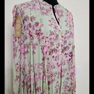 Hemant and Nandita Adira Floral Pink and White Maxi Dress-Size Large