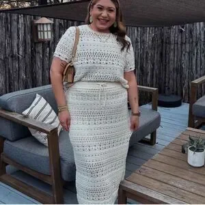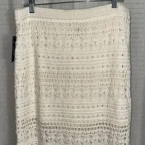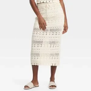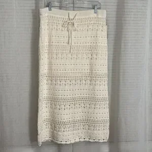 UT XLβCream Openwork Midi Sweater Crochet Knit Scalloped Drawstring Skirt