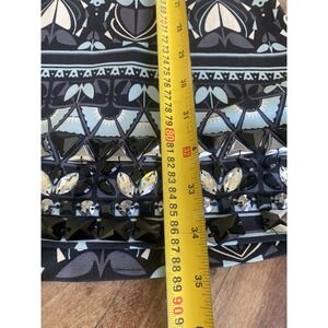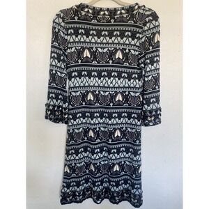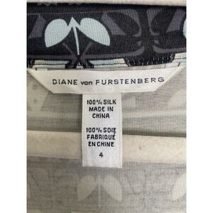 The Diane Von Furstenberg Silk Dress in size 4 is a stylish and versatile piece perfect for various occasions such as travel, parties, or casual wear. The dress features a geometric pattern with jeweled beads for added flair, a scoop neckline, and 3/4 sleeves. Made from silk jersey fabric, this knee-length shift dress exudes a classic yet artsy vibe, making it a standout piece in any woman's wardrobe. Designed by the renowned brand Diane von Furstenberg, this dress is a timeless and sophisticated choice for the modern woman.