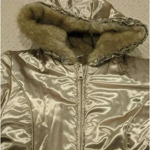 The Childrens Place Girls Gold satin tan Faux Fur reversible Jacket.
