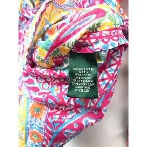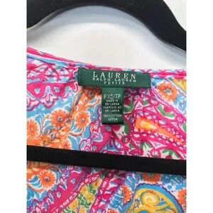 Lauren Ralph Lauren Petite Blouse Women PXS Pink Paisley Ruffle Top Cotton. Great Condition