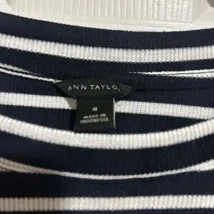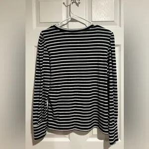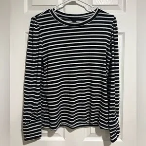 Ann Taylor Women’s Black and White Striped Long Sleeve Top Size Medium