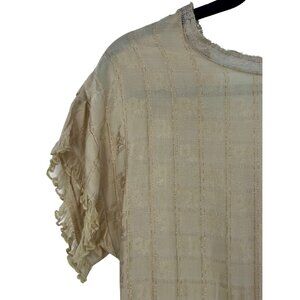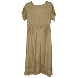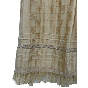 VERY RARE Vintage Free People Pale Gold Cream & Lace Trim Ruffled Peasant Midi Dress
