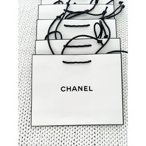 From Chanel. Authentic white with black beauty size small shopping bags. Comes with original tissue paper. Total 15 in the set.