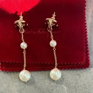 Salvatore Ferragamo Gold and White Pearl Earrings