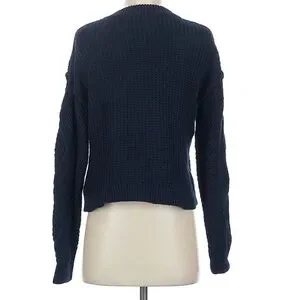 QUINCE 100% Organic Cotton Cropped Cable Knit navy Blue Sweater Small