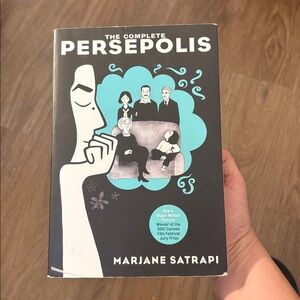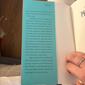 Graphic novel with a striking black and turquoise cover. Features bold illustrations.