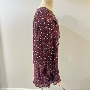 Parker Silk Purple Leopard Printed Bell Sleeve Kimberly Flounce Dress Small