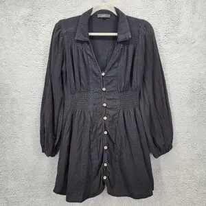 Lulus Black Long Sleeve Mini Dress Button Down Shirt Dress Medium