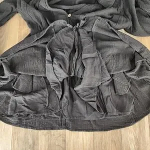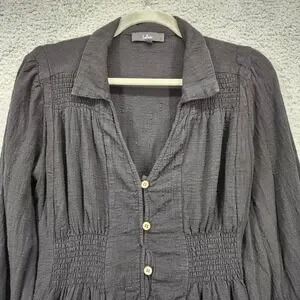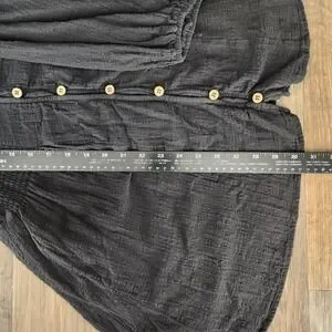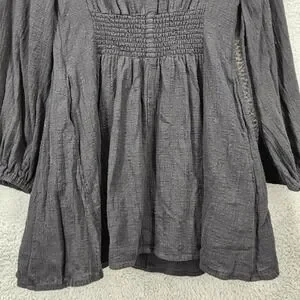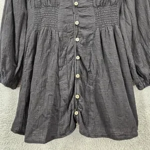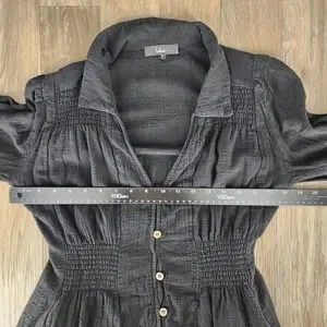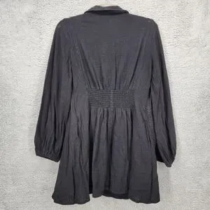 Keywords: Lulus dress, black dress, mini dress, shirt dress, button down dress, long sleeve dress, bohemian dress, rayon dress, smocked waist dress, casual dress, collared dress, womens dress, medium dress
