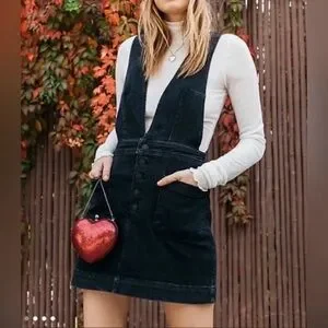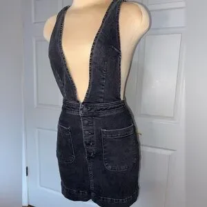free people denim dress, dungaree dress, pinafore mini dress, free people dress size 0, denim jumper, hipster style dress, vintage denim dress, festival outfit, grunge aesthetic, casual streetwear, 90s style dress, overalls dress, y2k fashion, denim overall dress, free people old school love dress, denim pinafore women, womens denim dress small