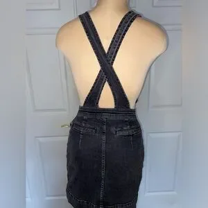 Free People Old School Love Denim Dungaree Pinafore Dress - Size 0 - EUC