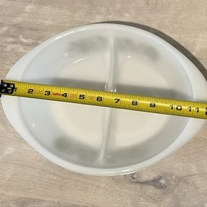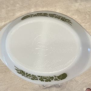 Beautiful Vintage Glasbake J2352 large divided dish in milk glass with a green pattern of herbs dill, parsley, coriander, & marjoram. This is definitely a collectors item in excellent pre-loved condition.