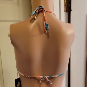 Vitamin A Sustainable Swimwear Orange and Blue Halter Bikini Top Size XS