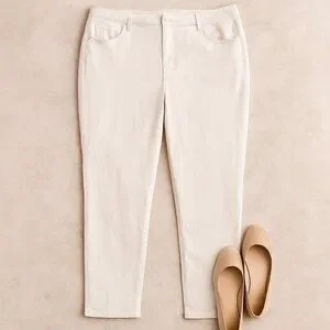 Kim Gravel Cream Straight Leg Pull On Stretch Pants 18 New