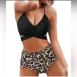 Women Cross Wrap Halter Bikini Set High Waisted Push Up Two Piece Swimsuits XL