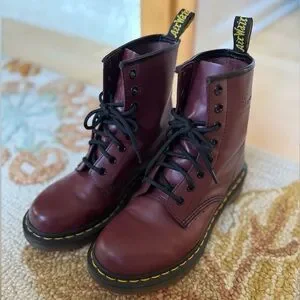 Perfect for fall and winter! Beautiful burgundy colored boots are a classic pair of Doc Martens. Gently used with a very small scuff on the toe. Please see pictures and let me know if you have questions!