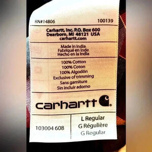 Carhartt Relaxed Fit Short Sleeve Plaid Shirt Men’s Size Large