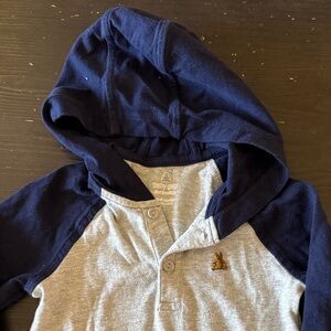 Cozy one-piece romper with hood long sleeve and pants . Ideal for playtime.