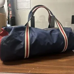 Experience the perfect blend of luxury and practicality with this Gucci blue duffel bag. Crafted with a durable fabric, it features a vintage-style gold Gucci logo patch that adds a touch of elegance. The cylindrical shape and substantial size make it ideal for travel or gym use, embodying Gucci's classic sporty yet sophisticated design. Unisex. Certified authentic with Entrupy.