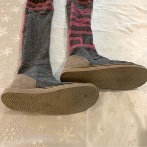 Stylish over the knee boots. Gray with pink accents. Comfortable and chic.