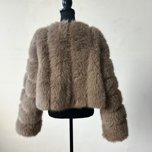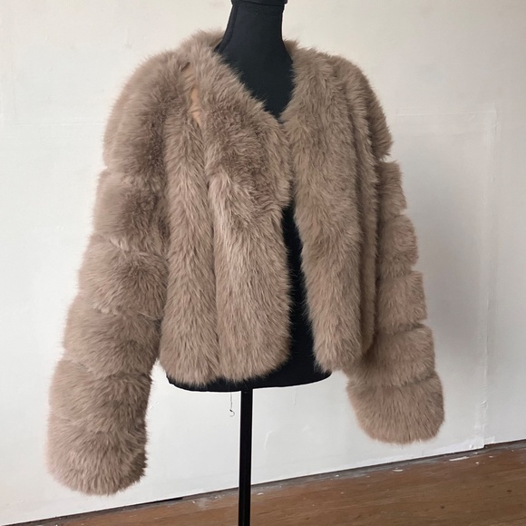 Stay warm and stylish with this luxurious faux fur jacket. Perfect for any occasion, this brown jacket adds a touch of elegance to your wardrobe.