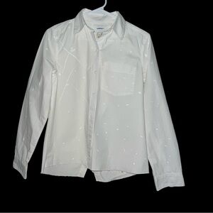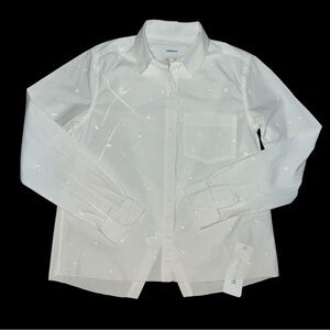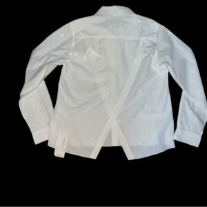 Current Elliott Cross-Back Ivie shirt size 0 pre owned like new unworn condition no stains flaws holes . Cross over back high low white paint splatter button down long sleeve authentic from The Real Real with tags see pictures for measurements. Style 17-5-000864-TP00780