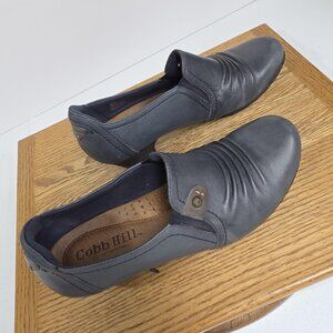 Cobb Hill by New Balance Shoes Womens Size 8.5 Navy Leather Ruched Slip-On Heels