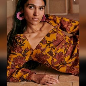 Sezane Carola Dress in Mustard and Burgundy Floral
