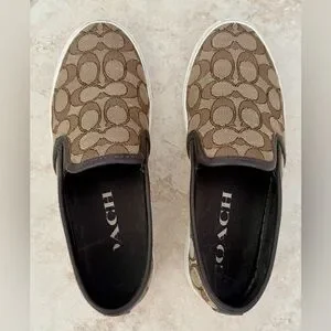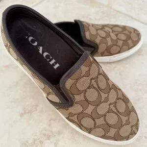 Coach slip-on sneakers with signature pattern. Tan and brown design. Classic and comfortable. Dress up or down, these never go out of style!