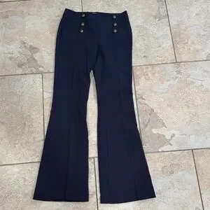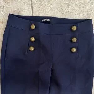 Elegant navy trousers with striking gold accents. Ideal for a sophisticated style.