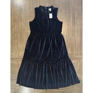 NWT J. Crew Black Velvet Sparkles Tiered Midi Dress Ruffles Women’s Size 6 NEW