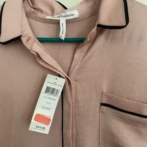 BCBGeneration rose smoke Blush Button-Down pajama top with Black Accents